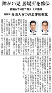 3月13日の予算特別委員会での質疑が新聞等で掲載されました。